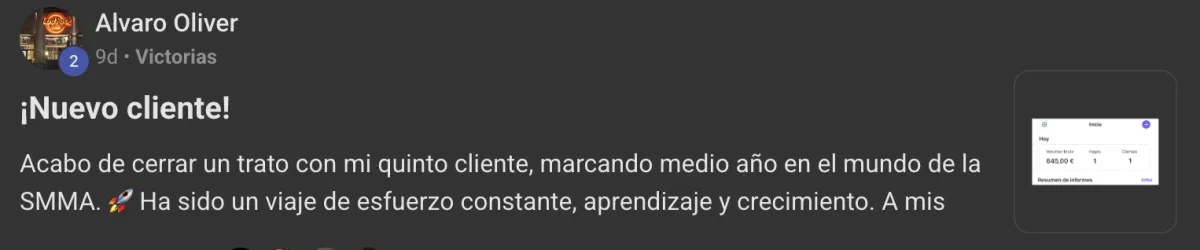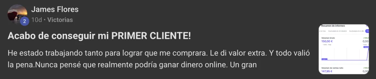 En cuanto al tiempo real, es imposible para mí decirlo, ya que varía para cada persona. Pero con este modelo de negocio, que creo que es el único en el mundo donde puedes recuperar tu inversión después de tu primer cliente. Después de cerrar tu primer cliente, serás rentable y solo tendrás un gasto adicional cuando hayas cerrado más clientes.Estarás generando ingresos pasivos casi de inmediato sin costes adicionales y probablemente con un mínimo de trabajo de soporte.