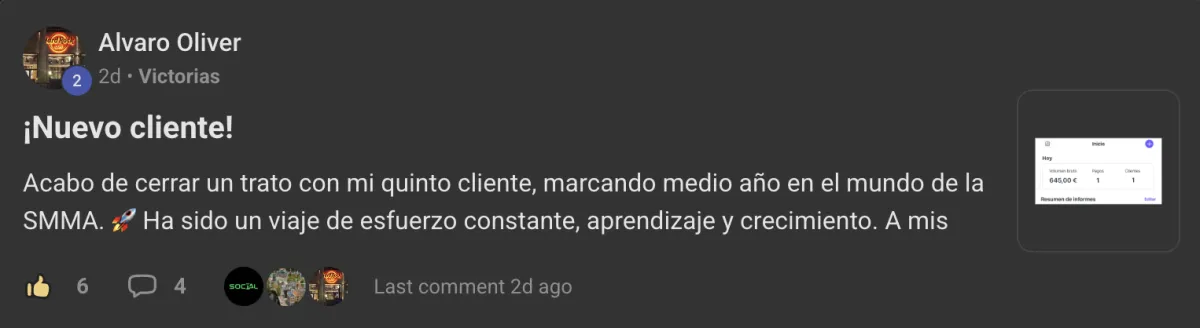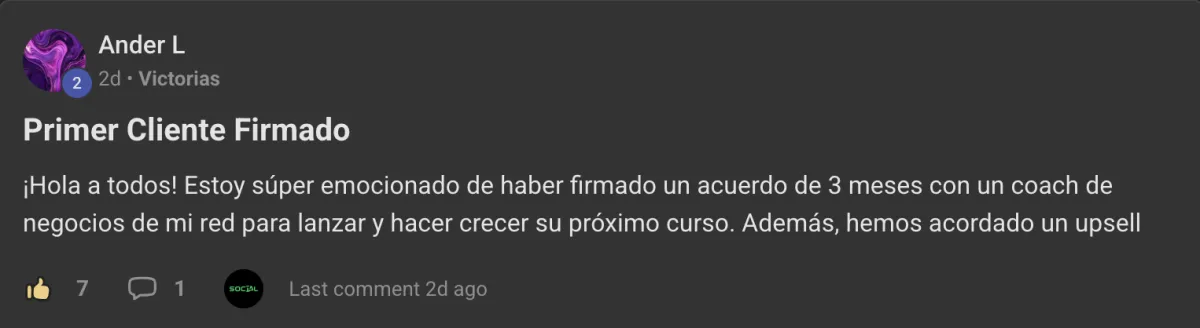 Acceso 1:1 al calendario de Social y línea directa de WhatsApp.